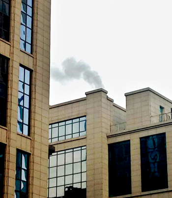 城区云中路瑞新装饰城对面,有两个烟囱冒烟,污染环境。城区七一路临街一酒店楼顶有烟不断冒出,而且味道呛人。希望商户或住户配合治理,共同营造碧水蓝天的良好环境。