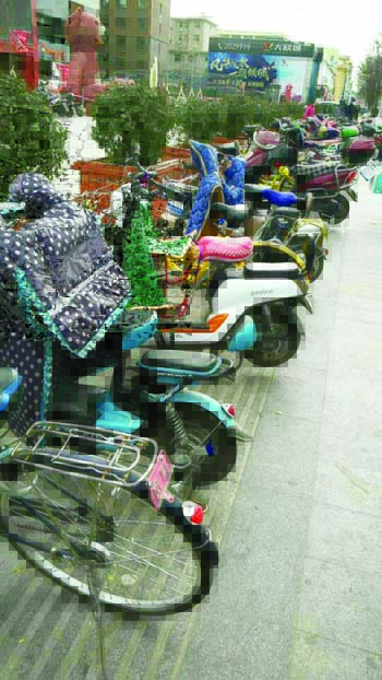城区新建南路大欣城人行道、盲道经常被自行车、电动车侵占,希望相关部门合理规划、管理停车位,也希望市民加强公德意识,不要乱停乱放车辆。