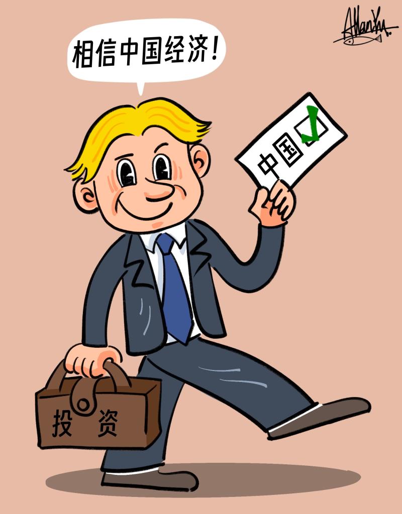 中国市场不是“可选项”而是“必选项”。外资加码在华投资,外商深耕中国市场,国际机构接连上调中国经济增长预期,共同对中国经济投下“信任票”。对于理性的观察家来说,与唱衰中国的“唱将”们靠嘴鼓噪相比,这些用脚投下的“信任票”更具说服力。(漫画:于艾岑;记者:高文成)