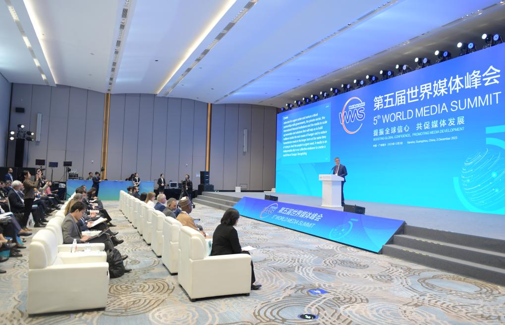 2023年12月4日,以“提振全球信心 共促媒体发展”为主题的第五届世界媒体峰会在广州南沙举行平行分论坛活动,嘉宾在分论坛上发言。新华社记者 卢汉欣 摄