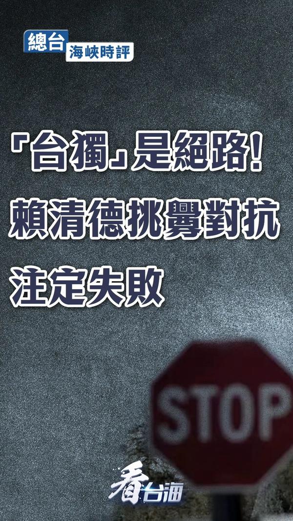 不管赖清德讲什么、怎么讲,都改变不了两岸同属一个中国的事实,改变不了两岸关系的基本格局和发展方向,阻挡不了祖国终将统一的历史大势。祖国大陆解决台湾问题、完成国家统一的意志坚如磐石,维护国家主权和领土完整的能力坚不可摧,反对“台独”分裂和外来干涉的行动坚决有力。“台独”的任何图谋和挑衅,在祖国大陆的强大实力面前,都是以卵击石,必将以失败告终。(中央广播电视总台台海之声)