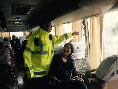 稽查人员叮嘱驾驶人员雨天行车注意事项