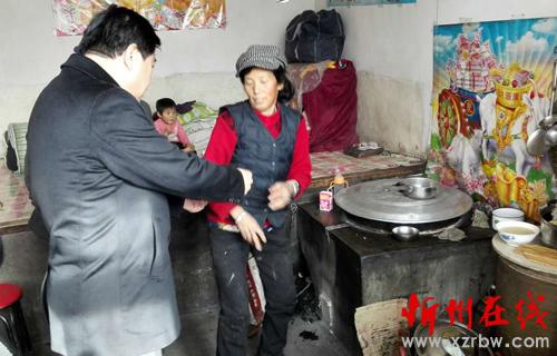 为尽快落实精准扶贫工作的具体要求和指示精神,2016年12月26日,忻州第十三中书记谢俊龙、副校长胡俊彦与市教育局领导、以及部分市直学校领导来到精准扶贫点静乐县双路乡,对村情村貌、学校建设和村中五保户、低保户及扶贫户的情况进行了详细调研,并走访慰问了12户精准扶贫对象。
