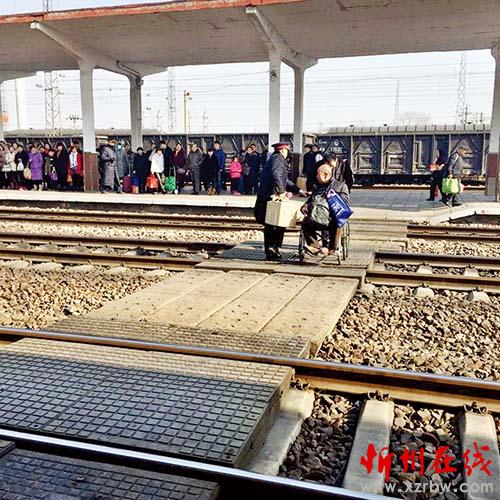 本报讯2月1日是农历大年初五,忻州火车站,6817次列车即将开始检票,客运员赵东升在候车室发现一名上了年纪的老人拎着很重的行李,且行动十分缓慢,走路蹒跚。他主动上前询问,并推出轮椅通过平交道口将老人安全送上列车,这一举动得到了旅客的一致好评。