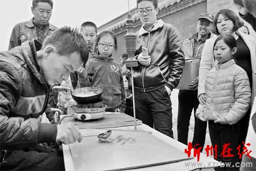 4月4日,在原平市天牙山风景区一位农民正在制作糖人。当日是清明节,不少游人纷纷走出家门踏青赏花,有许多人围在农民身边要求买糖人,这位农民制作糖人手法熟练,既丰富了景区市场,又增加了个人收入。 褚震 摄