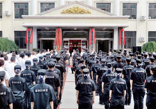 本报讯 8月18日上午,在山西大正保安服务有限公司新址——忻州城区九原东街2号院内,保安方阵列队整齐,盛大的新改组公司揭牌仪式标志着该公司工作业态开启了崭新的一页,从此走上加速发展的快车道。
