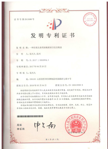 发明者张兴父子从2010年创办山西省神池县粮油机械研究所以来,共获国家专利24,其中发明4项。“食用油抗氧化包装”是最近的一项科研成果。张兴告诉记者,为了防止氧化,市面上的食用油绝大多数采用添加抗氧化剂,同时使用小包装。而神池胡油,从不添加抗氧化剂。实验证明,零星食用不出一个月氧化值就会超过标准,日久愈甚。使用这个新发明的食用油包装,存储和食用期达到2年之久,氧化值为5.5,仍在GB/T5538标准≤6范围之内。