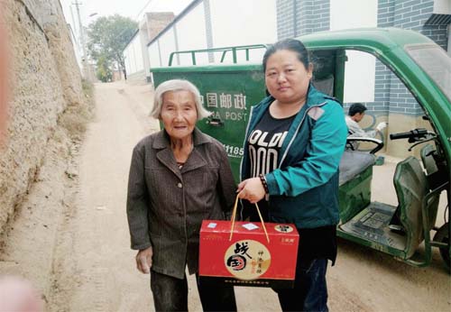 本报讯 中秋佳节到来之际,中国邮政集团公司定襄分公司的投递员志愿者们身着“邮政绿”标志服,利用工作间隙为当地18名孤寡老人送去月饼和节日祝福。这些志愿者们用自己的实际行动温暖着老人们。他们经常利用节假日和工作间隙去帮助、慰问孤寡老人,他们的温暖举动,为自己、为邮政企业赢得了社会的认可和赞誉。
