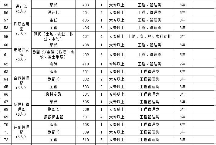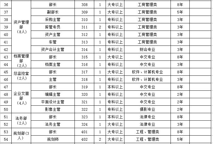 2、大专以上文化程度,专业包括汉语言文学、经济管理、法律、财会、农学类、林业类、水利类,计算机类、规划设计、测绘、工程管理、建筑类。