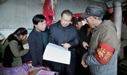 市人大常委会副主任、静乐县委书记李德新在段家寨乡石门子村调研指导脱贫攻坚工作。本报通讯员 摄