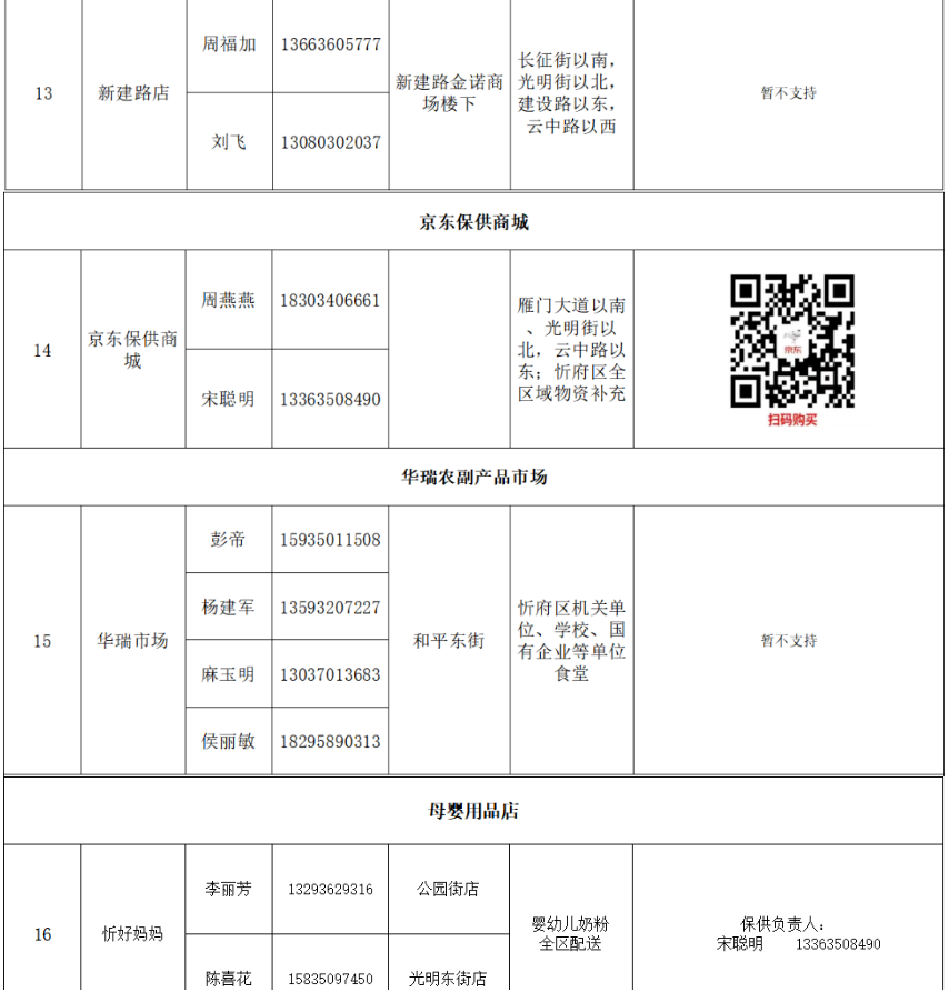 忻府区保供粮油门店联系方式