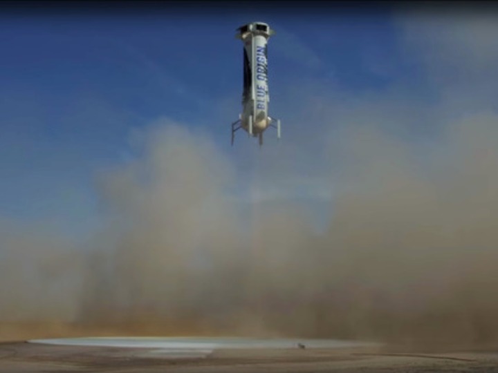 这张2016年6月19日的视频截图显示,美国蓝色起源公司“新谢泼德”火箭准备在美国得克萨斯州范霍恩附近的试验场着陆。(新华社/美联)