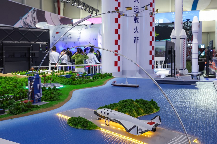 2022年11月11日,中国新一代运载火箭模型及发动机实物亮相中国航展。新华社记者 刘大伟 摄