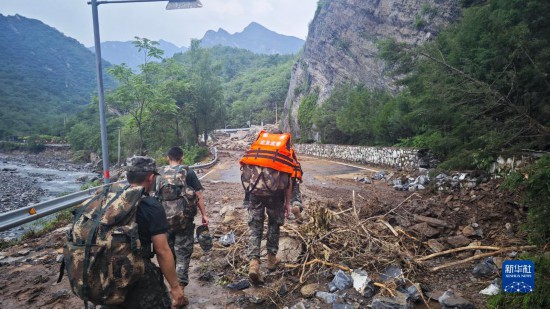 因山洪暴发,北京市门头沟区斋堂镇交通中断。武警北京总队机动第一支队应急救援队徒步15公里山路,人均负重25公斤,为12个村运送食品、医药、防疫、照明等基础物资,保障村民基本生活。