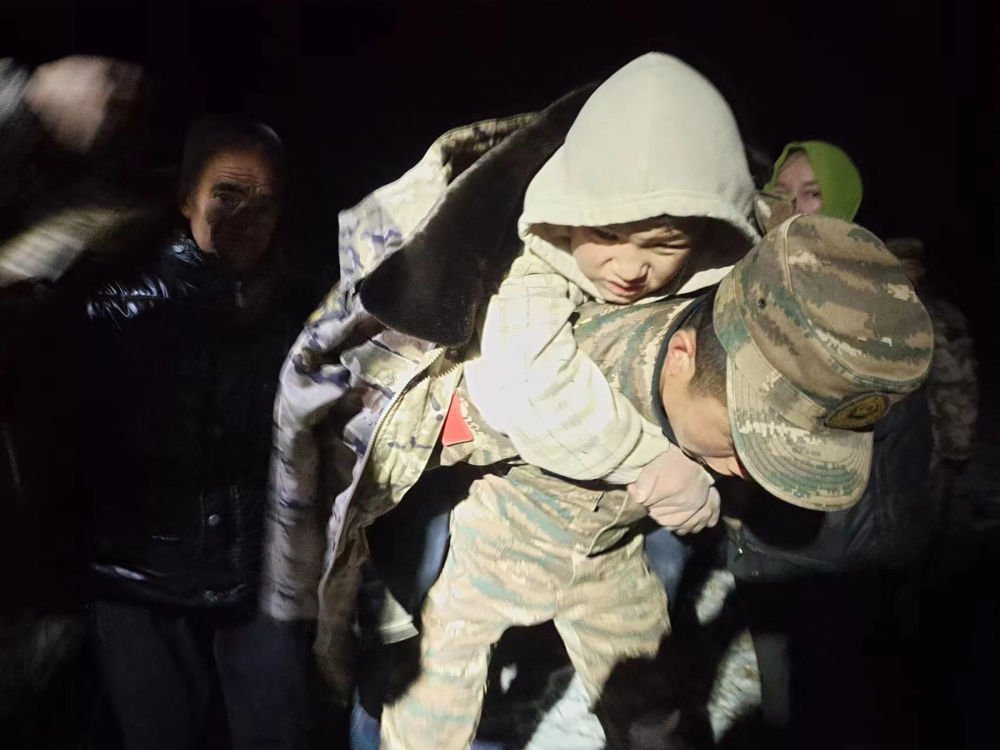 ↑ 12月19日,武警甘肃总队临夏支队官兵在甘肃省临夏回族自治州积石山县刘集乡阳屲村展开救援。 新华社发(侯崇慧摄)