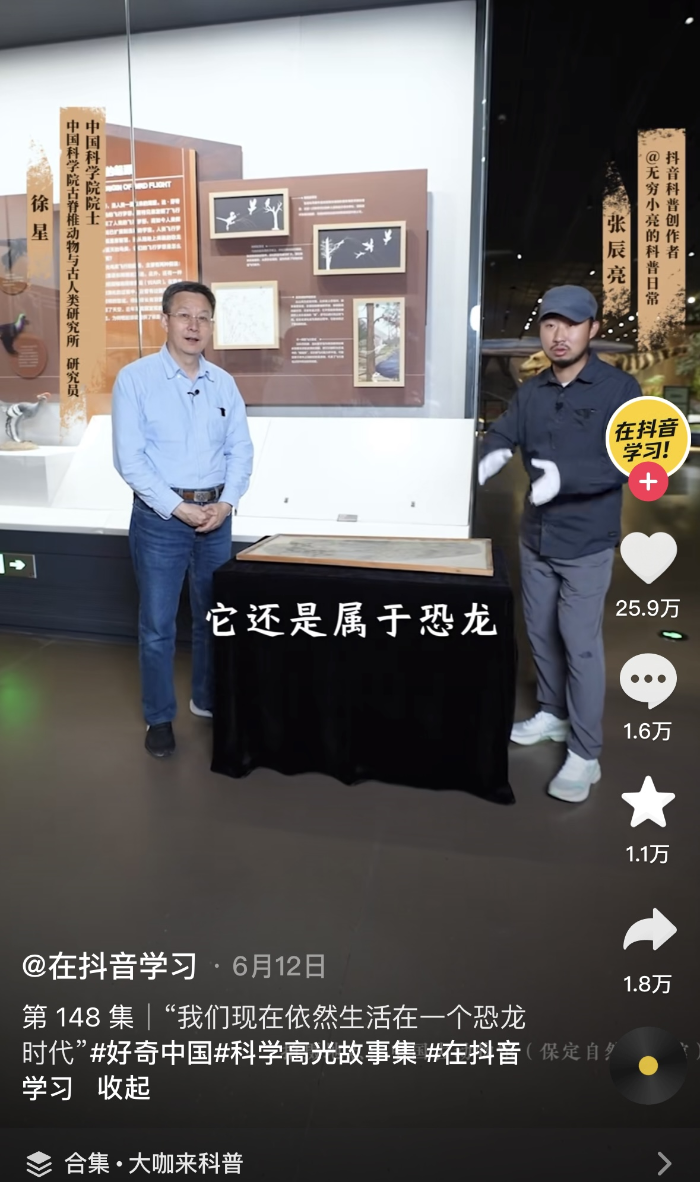 前不久,中国科学院院士徐星和《博物》杂志副主编、《中国国家地理》融媒体中心主任“无穷小亮”,带着600多万网友“云逛”中国古动物馆(保定自然博物馆),那寓教于“逛”的科普形式、极具网感的科普语言,就让那些古生物知识从课本里钻了出来,变得易懂可感。