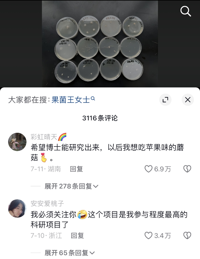 其次,他们“网友有疑问,科普来解惑”的科普答疑方式很活。赵琪老师和许博士在收到“果菌王”后,会实时更新研究最新进展,硬生生地把科普变成了“连续剧”。