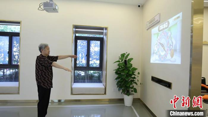 浙江杭州,一老人在进行线上体感互动游戏。肖健 摄