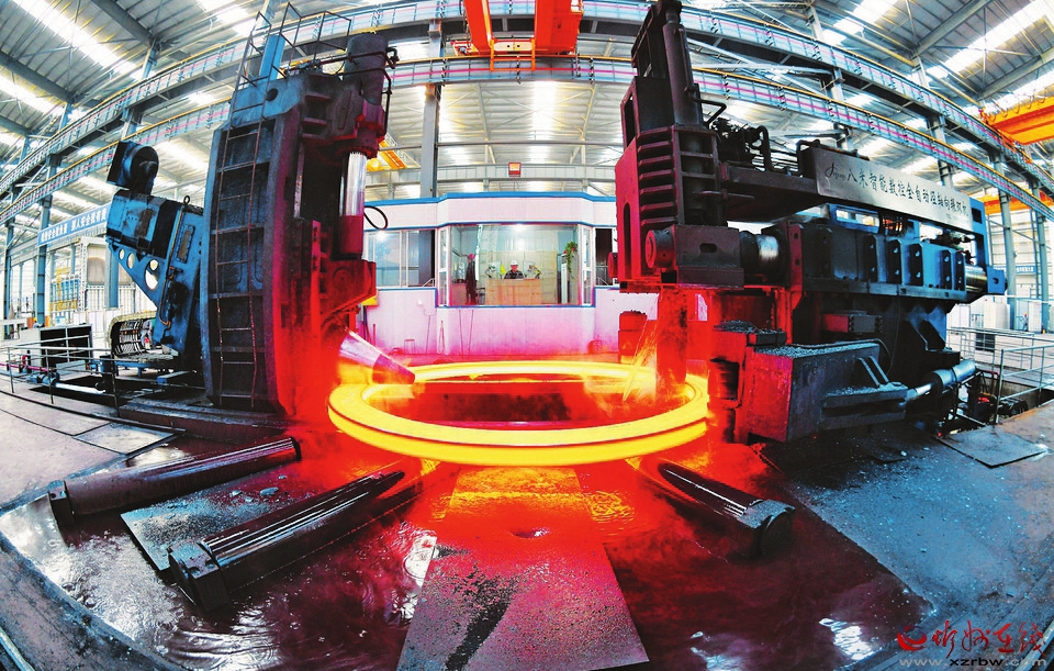 截至目前,全县共有锻压设备754台,机加工设备7308台,热处理设备和加热炉1017台,机器人、检测设备、智能图像识别系统等5762台(套),年生产能力140万吨,从业人员4万多名,全县法兰产量占全国产量的30%,风力发电塔筒法兰占全国产量的60%以上,锻钢法兰年出口量占全国的70%。去年全县法兰锻造产业总产值完成142亿元、销售收入完成139亿元。“中国锻造之乡”实至名归。