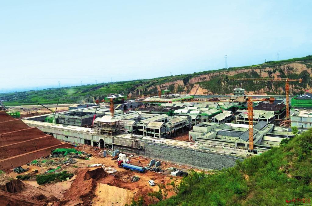 游客集散中心,总用地面积为9万平方米,分为四大区域:博物馆酒文化展示区,场景式民宿酒店区,黄酒主题文旅区,酒文化交流会议中心以及管理办公区。目前,四面城墙主体结构及二次结构全部完成,正在进行装饰面施工;会议中心、酿造工坊正在进行二次结构施工及屋面饰面工程;演艺中心与酒仙庙正在进行主体施工;全部工程正在进行综合管网施工,土建整体完成度接近85%。