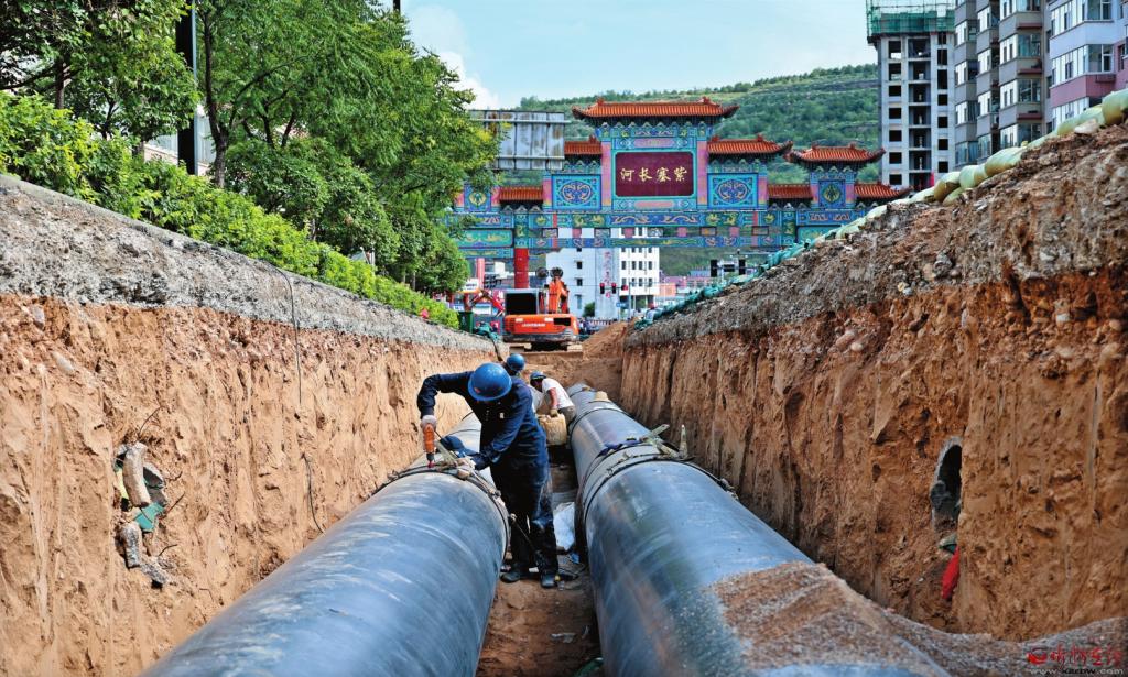 县城主干道管网铺设施工现场。 本报记者张存良摄