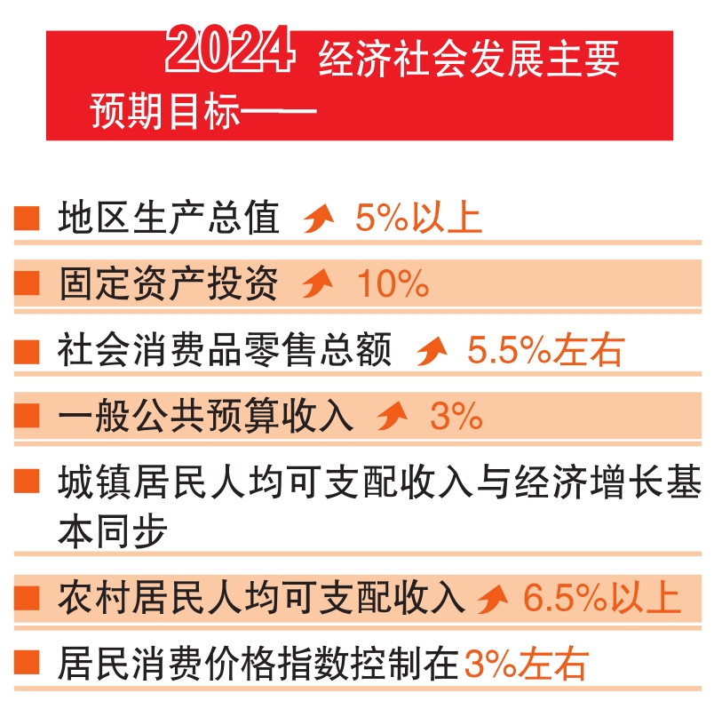 报告指出,要保持战略定力,找准定位,发挥优势,全力以赴开创经济社会发展新局面。一是夯实有效支撑,巩固增强经济回升向好态势;二是发挥基础优势,加快构建现代化产业体系;三是深化改革创新,激发高质量发展内生动力;四是加强协调联动,推进乡村振兴和新型城镇化;五是坚持为民造福,千方百计保障和改善民生;六是强化系统施治,夯实安全发展基础。(吴光宇 刘强)