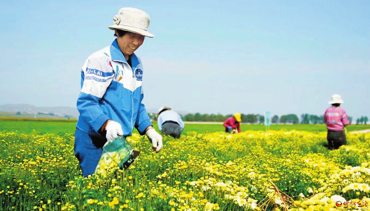 金秋的五寨,千亩菊花种植基地里盛开的药菊吐露芬芳,微风中带着淡淡清香。