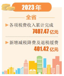 本报讯(记者任志霞)近日,记者从全省税务工作会上获悉,2023年全省各项税费收入累计完成7407.47亿元,全省新增减税降费及退税缓费401.42亿元。