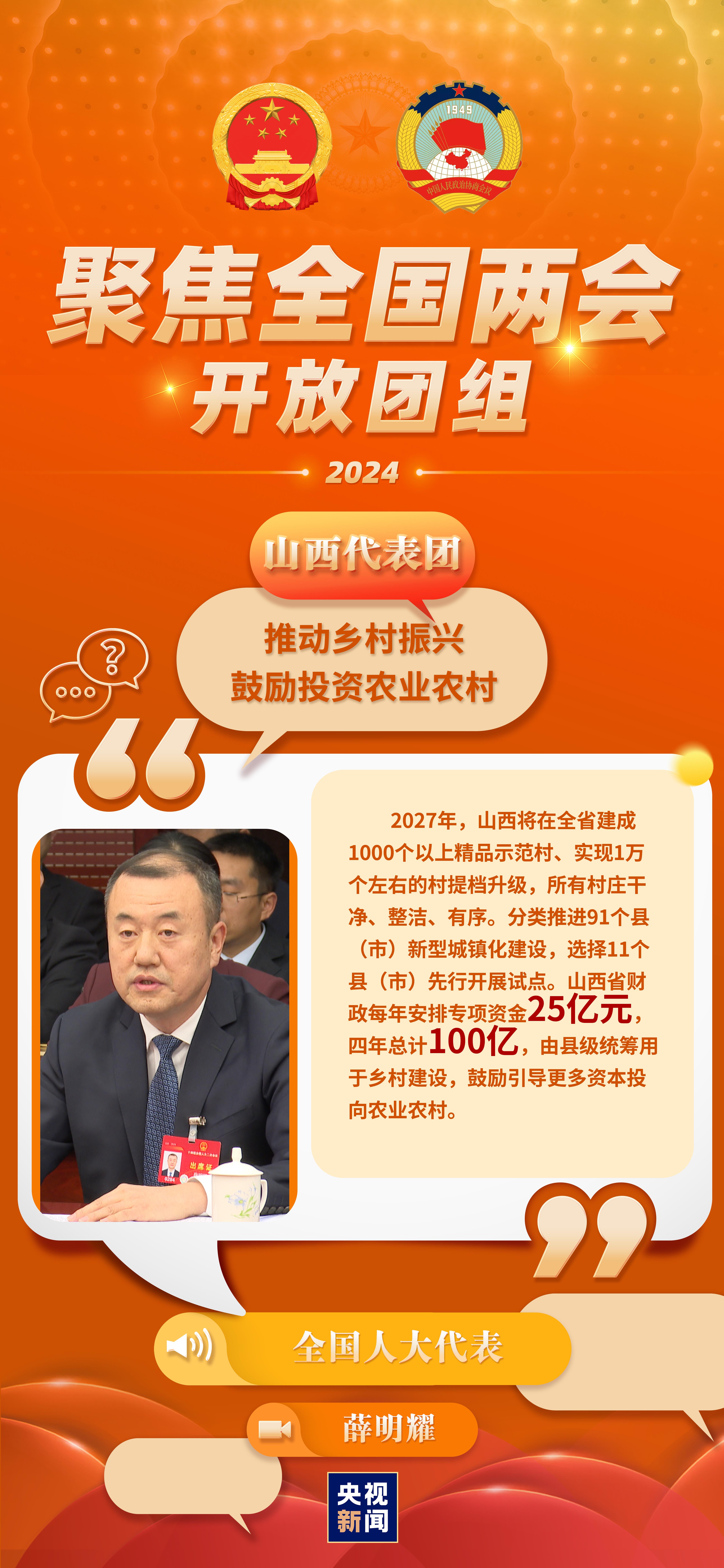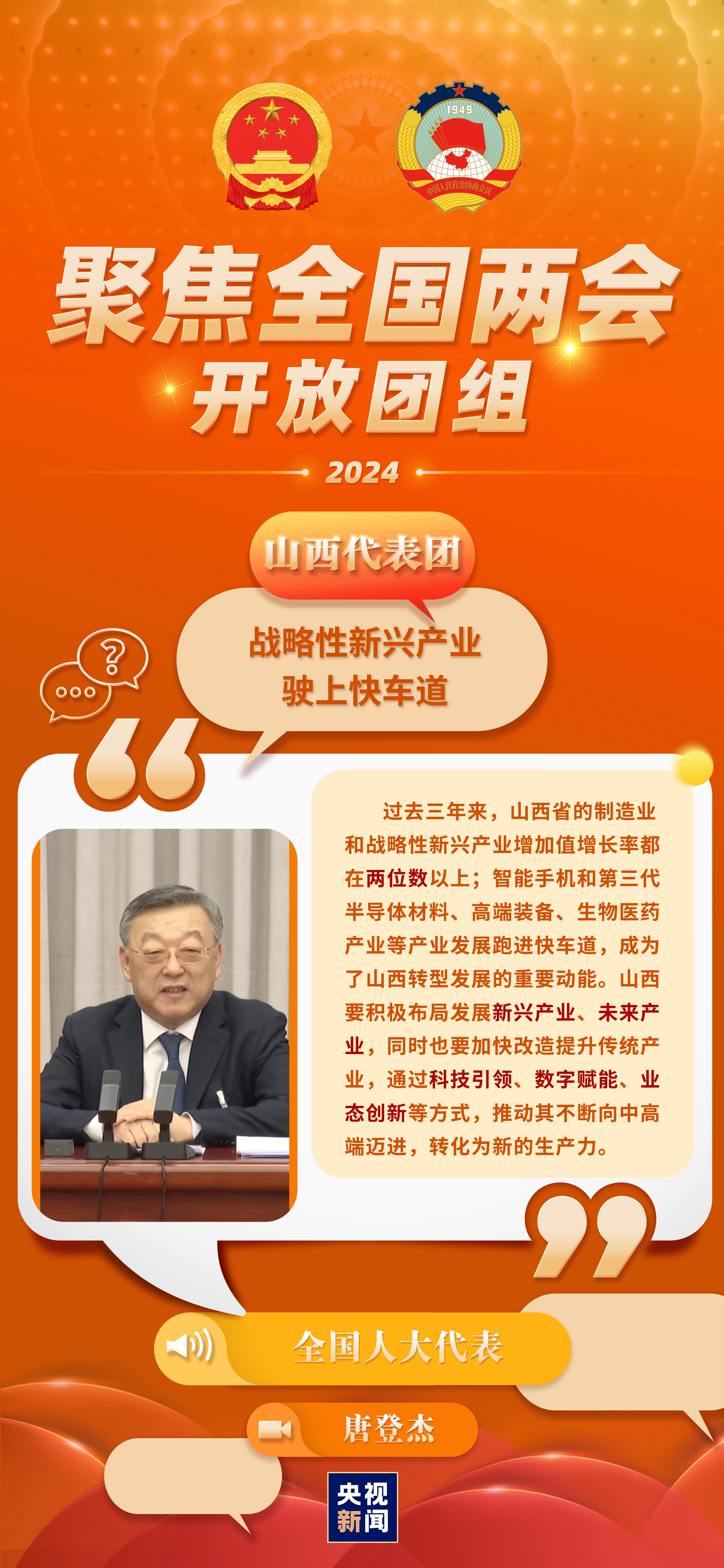 今天(3月6日)下午3点,山西代表团举行开放团组活动。2023年,山西省地区生产总值为25698.18亿元,增长5.0%,其中第二产业增长5.1%,对经济增长的贡献率更是高达46.4%。山西提出,到2030年基本完成资源型经济转型任务。