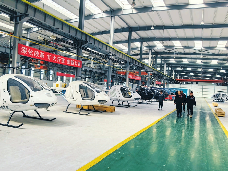 4月11日,山西喆航生产车间内,工作人员再次检视准备交付的ZH281A直升机。