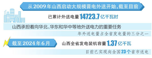 记者了解到,山西承担着向华北、华东和华中等地外送电力的重要任务,年外送电量占全省发电量的三分之一。截至2024年6月,山西全省发电装机容量1.37亿千瓦,电力外送基础不断夯实,目前山西已实现向全国23个省市送电。