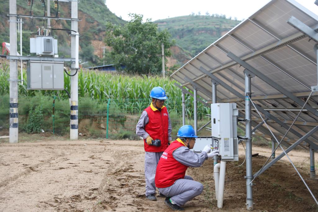 国网山西电力太行黎明共产党员服务队在检查村级光伏电站运营情况。(新华社发)王航 摄