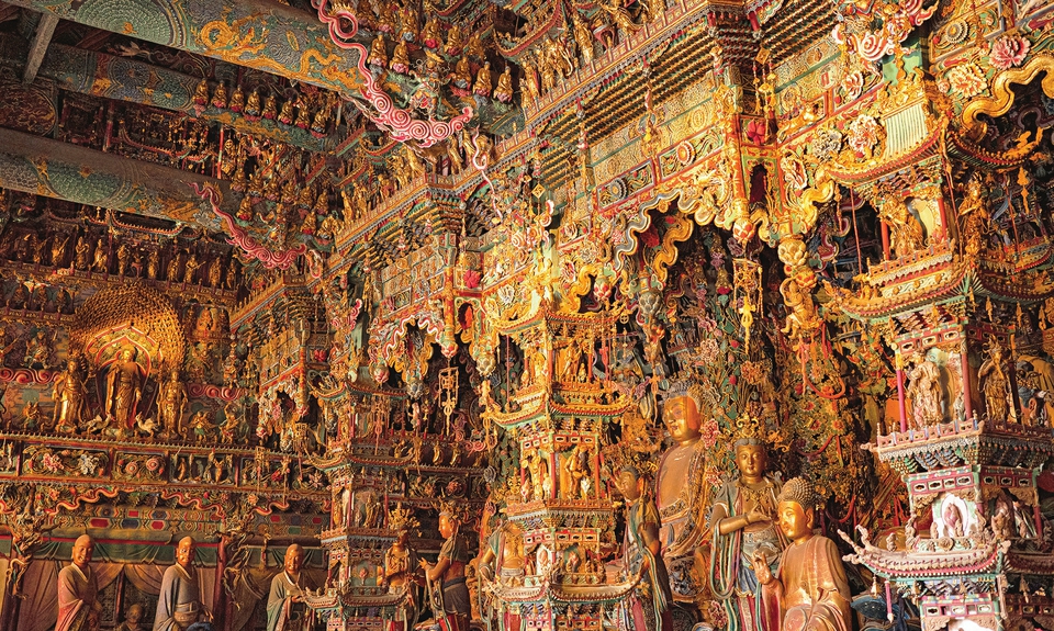 小西天大雄宝殿内的悬塑艺术精美绝伦。