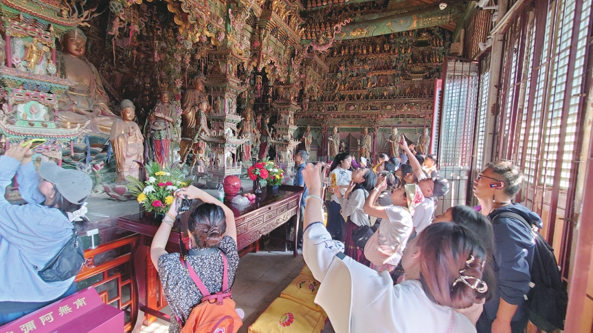 大雄宝殿内的悬塑让游客赞叹不已。