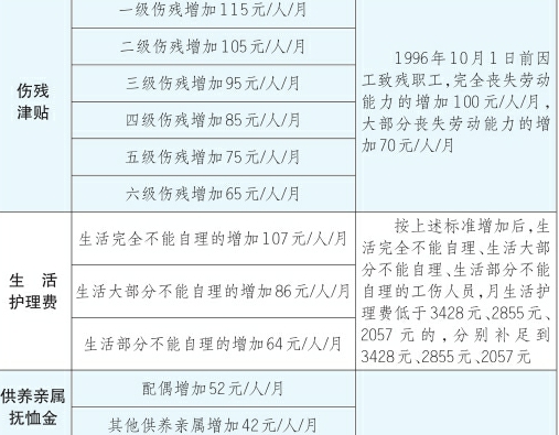 本报讯省人社厅、省财政厅日前下发通知,经省政府同意,我省调整全省工伤职工伤残津贴、生活护理费和因工死亡职工供养亲属抚恤金水平。