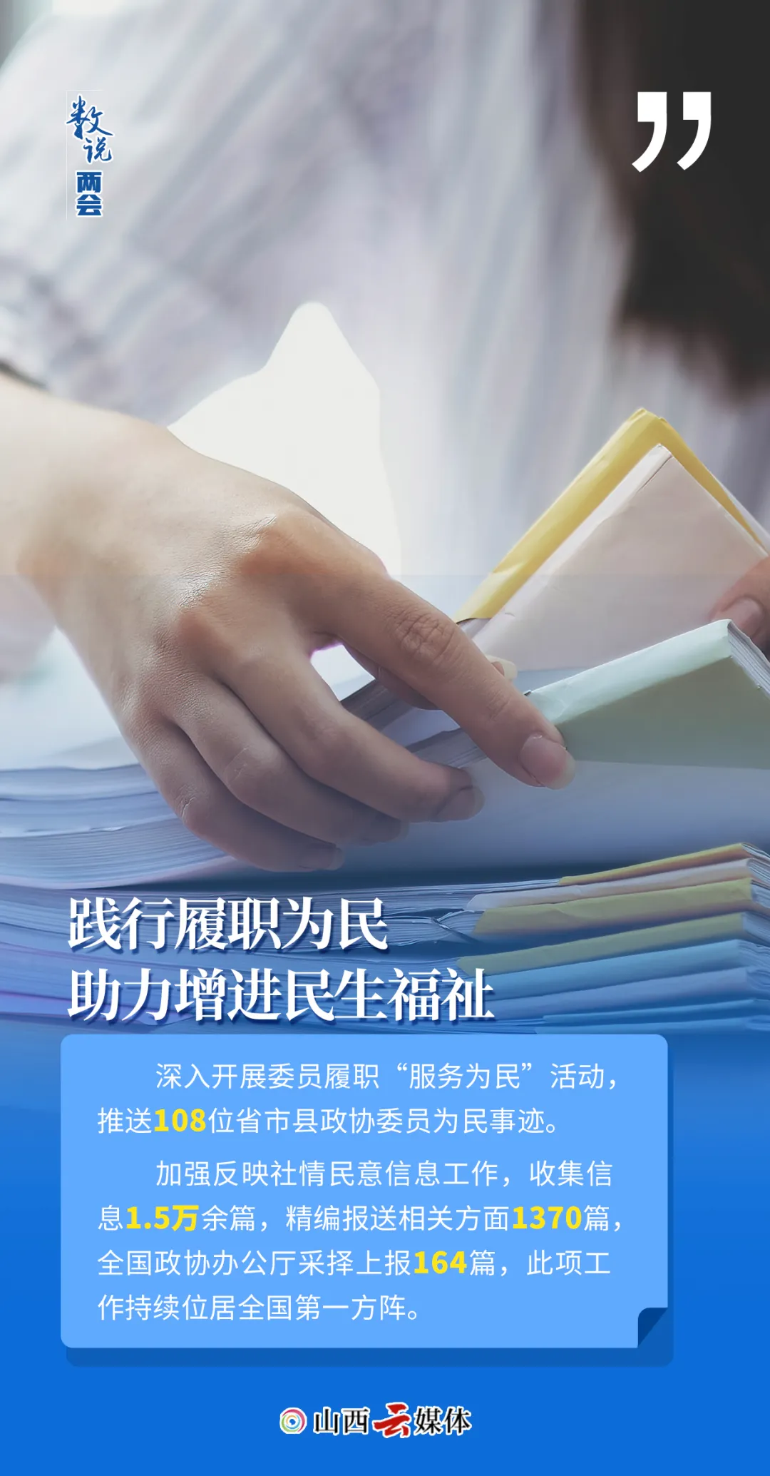 近日,政协第十三届山西省委员会第三次会议在太原开幕。省政协党组副书记、副主席徐广国作中国人民政治协商会议山西省委员会常务委员会工作报告。在这份报告中,一些数据格外“亮眼”。我们一起“数”览山西省政协常委会工作报告。