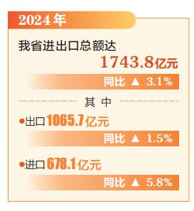 从贸易主体看,2024年,全省活跃企业持续增加,有进出口实绩的企业达2084家,同比增加3.7%,净增加75家。
