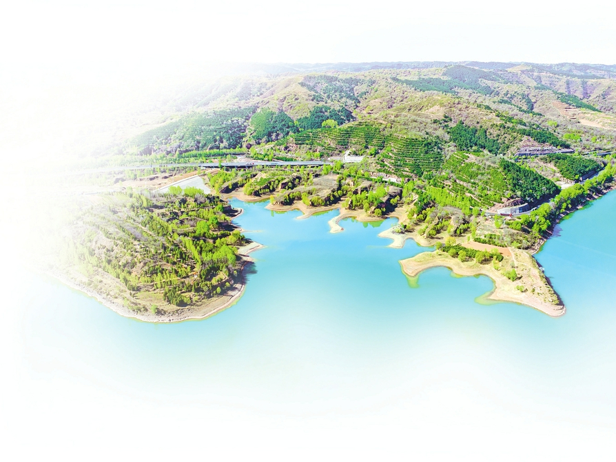 左权县左权湖与湖岸线、树木相互映衬,绘就一幅美丽的生态画卷。张文军摄