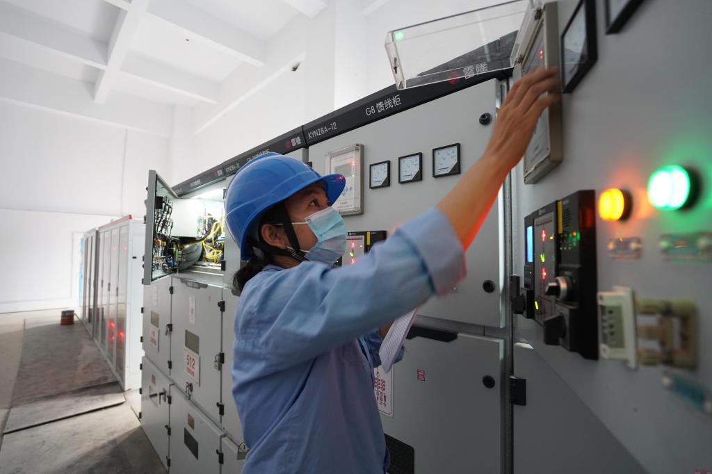 6月28日,供电公司保护人员对半导体产业园区设备进行调试