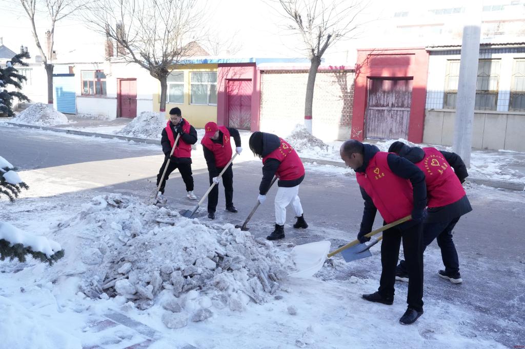党员先行,发挥模范作用。清雪现场,各单位充分发挥党组织战斗堡垒作用和广大党员先锋模范作用,积极参与到所包责任区开展扫雪除冰行动,用实际行动践行“我为群众办实事,办好实事为群众”的理念。经过行人及车辆的踩碾,积雪结冰又厚又硬给清扫工作带来了极大困难。干部职工们发扬不怕苦、不畏难的精神团结协作,科学分组、分片包干、先敲后铲……大家挥舞着手中的工具,铲的铲、扫的扫、推的推,各种清扫工具轮番上阵,呈现出誓将“雪”战进行到底局面。