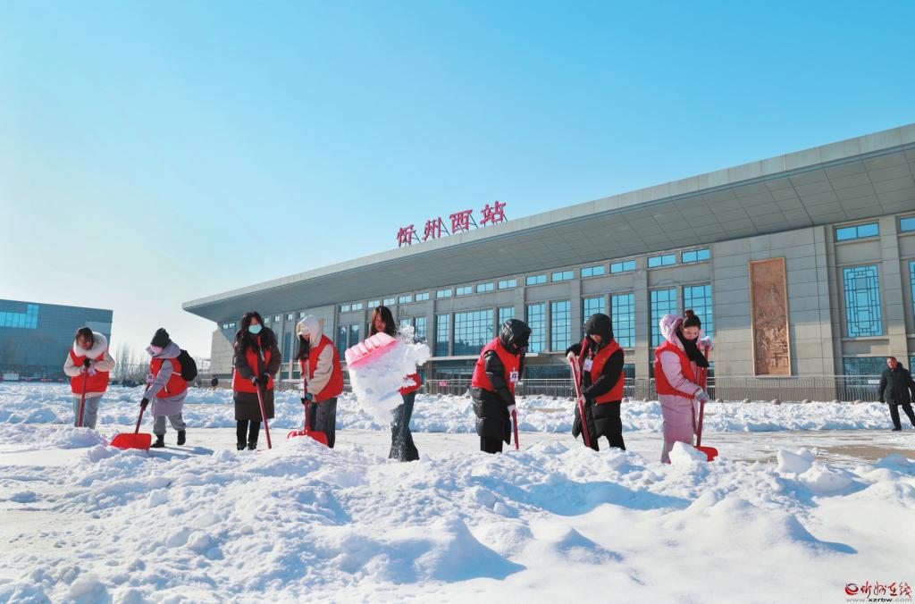 12月17日,共青团忻州市委联合忻州师范学院团委,组织机关人员、青年志愿者55人,自带铲雪工具,前往忻州西站站前广场清雪除冰。经过几小时的奋力清扫,站前广场积雪积冰情况得到缓解,为旅客的安全出行带来了便捷。