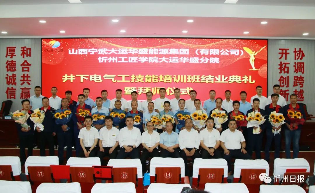 在今年大运华盛分院举办的第二期井下电气工技能培训班结业典礼上,一场隆重的拜师仪式中,19名徒弟毕恭毕敬向师傅鞠躬、奉茶、献花,师傅们则为徒弟送上工具包作为礼物。