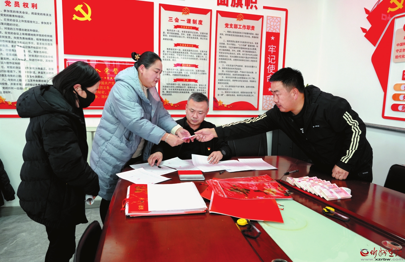 农历新年即将来临,五寨县孙家坪乡大辐车梁村村委会办公室里人头攒动,好不热闹。大辐车梁村双福农贸农民专业合作社年终分红仪式正在这里举行。“这是我们合作社成立5年来的第4次分红,合作社成立5年来共盈利35万元,全部分红给脱贫户。今年又是一个丰收年。”分红大会上,村党支部书记沈鹏细数村里一年的发展“成绩单”,大辐车梁村通过农副产品加工销售,带动村集体经济增收。签名字、摁手印、数钞票……村民们排队领钱,脸上堆满笑容。领到分红金的村民沈汾开心地说:“家里两口人,领了1000块钱,能买不少年货,感谢党的好政策。”