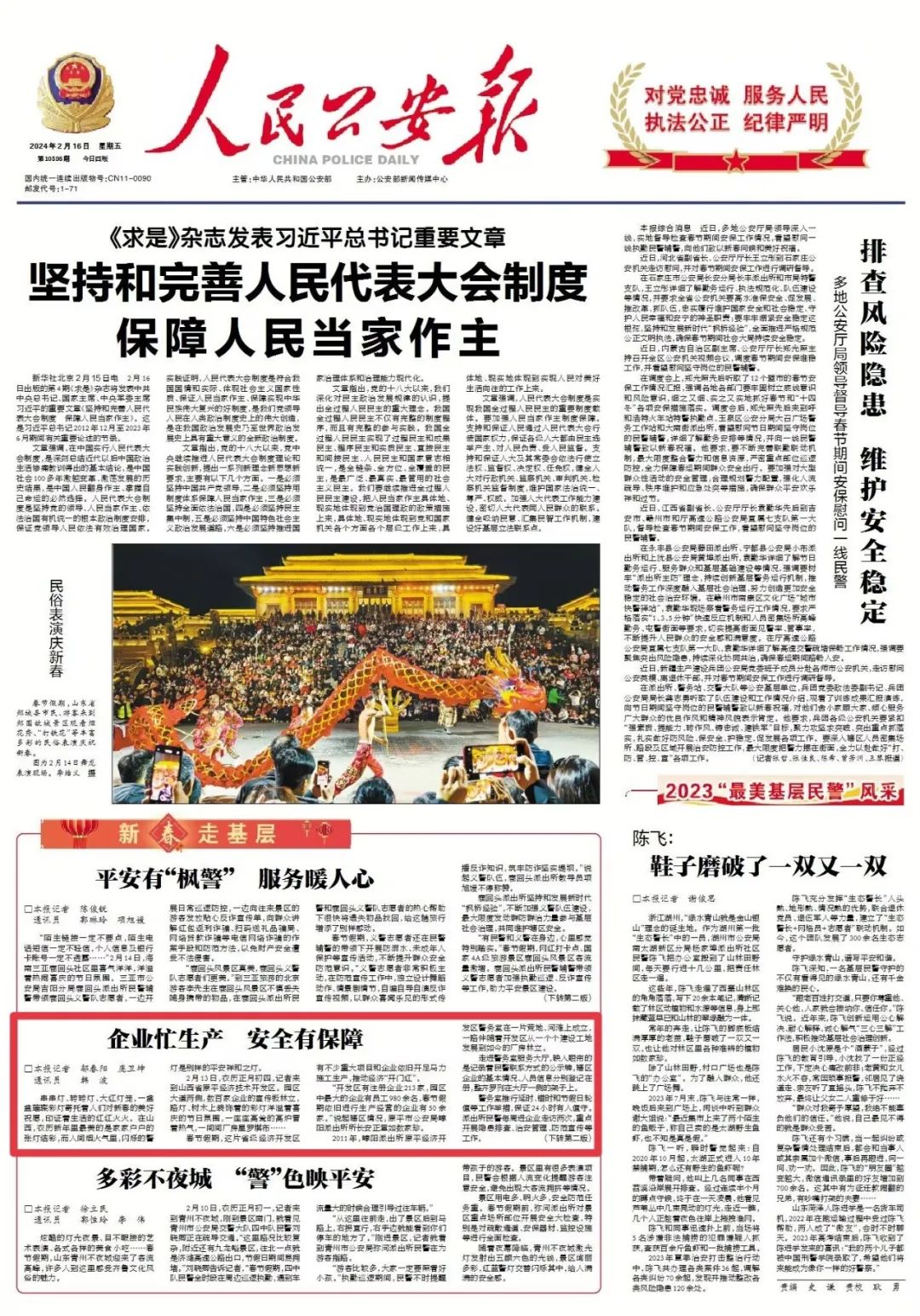 “这个春节,园区工厂不停工,我们守护平安‘不打烊’。”民警赵美亭到辖区企业走访,并就春节假期的重点安全防范工作进行宣传。