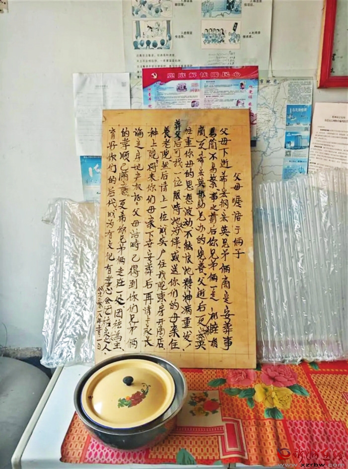 屋子里有他对孩子们事无巨细的嘱咐,以及对孩子们未来的期待:“做饭开此门为排热气,对房屋人体有益”;“人要常存乐观主义,人生乐观、身心健康,能孝养父母、教育子女如何做人,不与不孝人交,教子女要敬养双方父母,学会懂法、守法”。