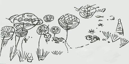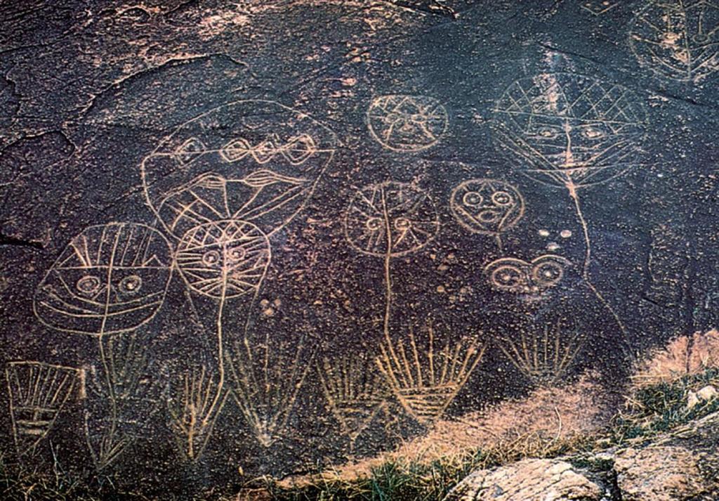 (上图:新石器时代《稷神崇拜图》;下图:《稷神崇拜图》复原图。)