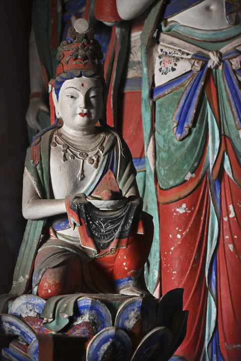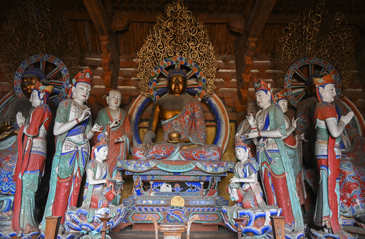 佛光寺东大殿内的唐代彩塑。马毅敏 摄。