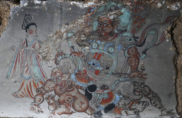 佛光寺东大殿内的唐代壁画。马毅敏 摄。