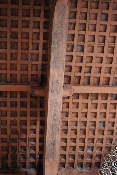 在大殿工作的第三天,更大的惊喜到来。林徽因发现在一根梁底部有非常模糊的墨迹。她仰起头,努力从不同角度观察,已经能够读出许多带有冗长唐代官衔的人名,其中最重要的是“佛殿主上都送供女弟子宁公遇”。