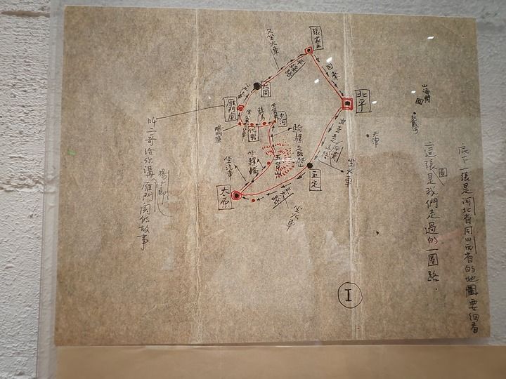 林徽因在给女儿的信中说,离开太原后由于交通不便,走得很慢,收不到信,也看不到报纸。她还画了一张图展示他们走过的一圈路,坐火车、公共汽车、骡车、货车、骑马、走路等,各种交通方式都尝试了。